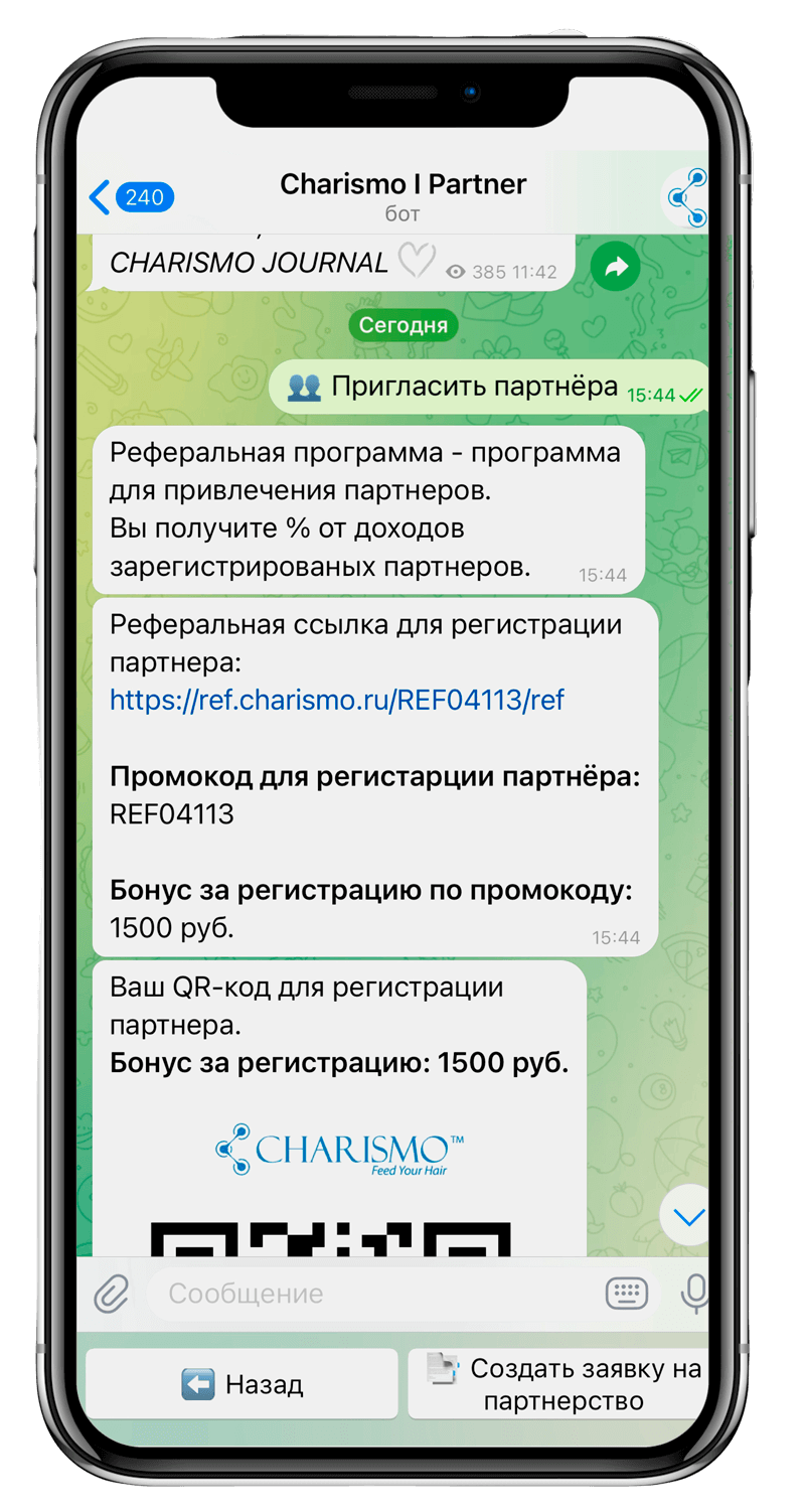 • Рекомендуйте партнерскую программу CHARISMO